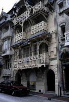 Edouard Niermans, dont j’ai déjà parlé à propos de la brasserie Mollard, ne refusa pas d’y édifier deux couples de maisons, reconnaissables à leurs très remarquables décorations en bois : les “Villa Hélène” et “Villa Jan”, d’un côté, d’un style presque normand, et les “Villa Française” et “Villa Parisienne”, de l’autre, d’inspiration beaucoup plus flamande, caractérisées par la présence de bow-windows au dessin compliqué.