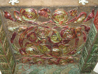 Ailleurs, ces frises de grès prennent des formes de scarabées très stylisés ou deviennent des motifs circulaires moins caractérisés. Quelques carreaux beaucoup plus abstraits complètent cette étonnante décoration, de part et d’autre de chaque fenêtre.