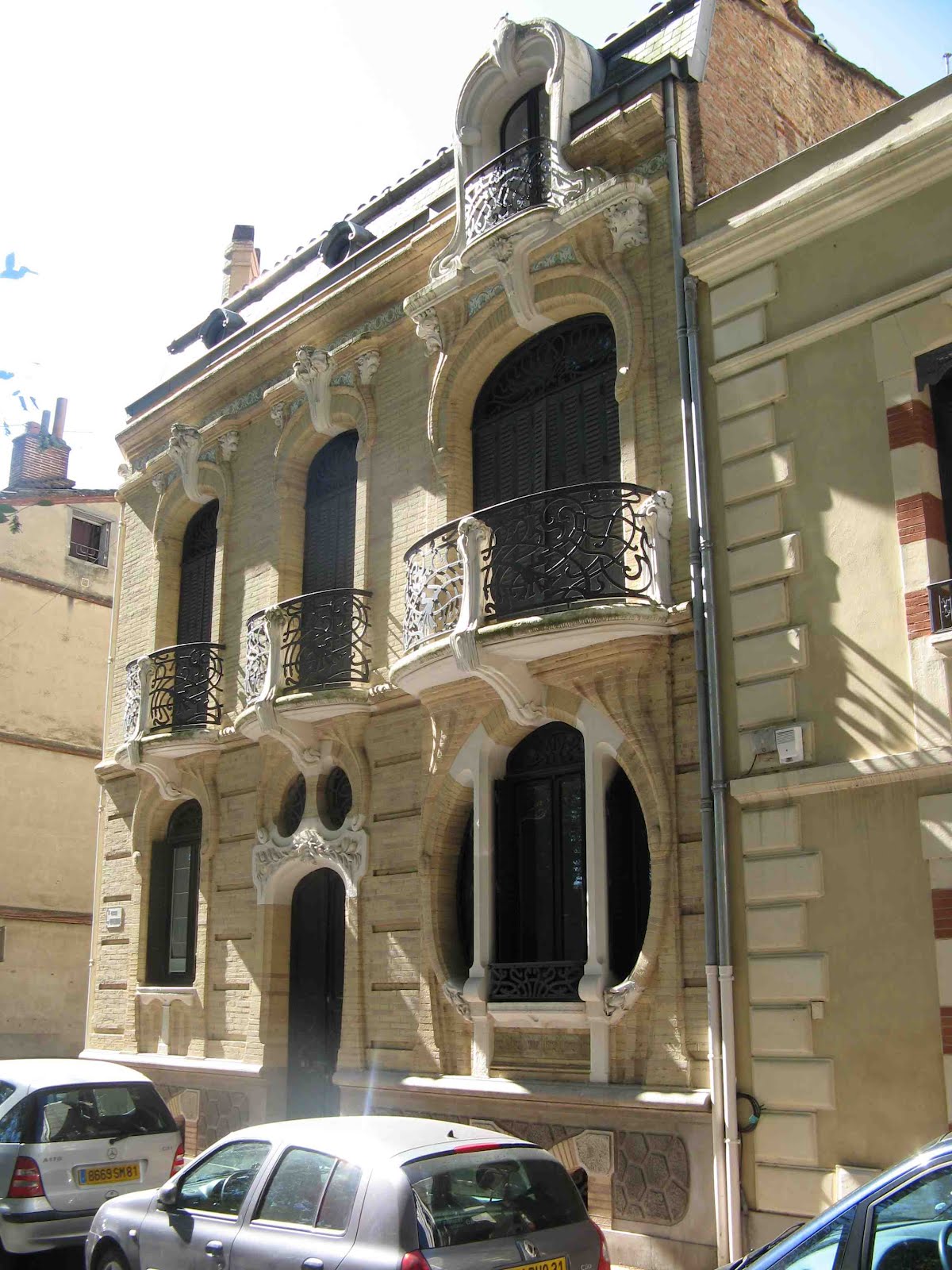 C’est dans ce style “proto-Art Nouveau” que sont réalisés les hôtels Roszé, rue Boileau, et Jassedé, rue Chardon-Lagache, en 1891 et 1893. Parfaitement conformes au style des pavillons de banlieue, ces édifices se singularisent néanmoins par une certaine complication des plans et la volonté de signaler chaque espace intérieur par des signes évidents en façade : larges baies pour les pièces de réception, fenêtres décalées pour les escaliers, modestie des ouvertures des pièces de service. Le pittoresque, chez lui, s’exprime par la céramique ou d’amusants décrochements de toiture, soutenus par des esseliers, simples poutres de bois obliques.