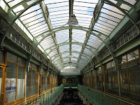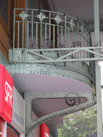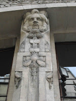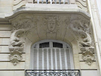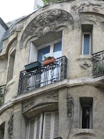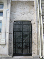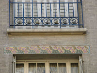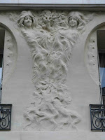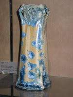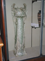 Puisqu'il évoque les arts décoratifs, et plus spécifiquement les productions céramiques de Sèvres, je l'ai illustré avec les trois objets créés par Hector Guimard pour cette manufacture. Dans l'ordre : le vase de Cerny et le vase de Chalmont - ce dernier étant plutôt un cache-pot -, en 1900, puis le vase des Binelles, en 1903, destiné à servir de jardinière monumentale. Les trois objets furent réalisés en grès flammé, et font un bel usage des fameuses cristallisations alors très à la mode à Sèvres, obtenues grâce à des projections de particules métalliques pendant la cuisson, dont les effets merveilleusement irisés étaient totalement aléatoires. En 1904, Guimard dessina également une vitrine pour présenter ses objets dans les salles de vente de la manufacture ; elle a malheureusement disparu et n'est connue que par des photographies. Mes images ont été prises dans le ravissant musée Adrien-Dubouché, à Limoges, qui est le seul à posséder un exemplaire des trois pièces.