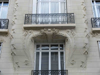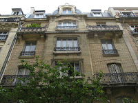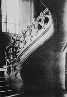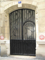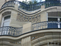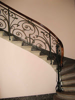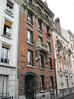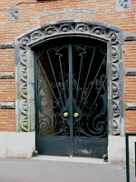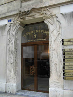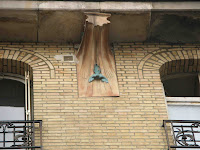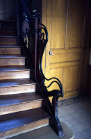 Le vestibule et la cage d’escalier de l’immeuble sont d’une bien plus grande sobriété, même si le travail reste d’une réelle qualité dans le détail. Les plafonds sont ornés de stucs géométriques aux lignes amples, mais très mesurés dans leur développement. On admirera, surtout, un bien joli départ d’escalier. Mais les portes des appartements, où on m’a assuré qu’il existait d’autres jolis plafonds stuqués, n’ont fait l’objet d’aucune attention particulière.