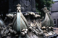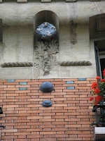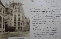 La construction date de 1902-1903 et ses architectes s’appelaient Eugène Cavalli et Ami Golay. Le sculpteur, sans doute d’origine italienne, était Emile-Dominique Fasanino et le ferronnier, auteur des beaux garde-corps des balcons mais aussi des fascinants ornements métalliques des toitures, Alexandre Vailly. Dans le chapitre consacré à la Suisse, dans “L’architecture de l’Art Nouveau”, publié en 1982 sous la direction de Frank Russell - un livre bien utile et agréablement illustré -, Jacques Gubler a bien évidemment consacré un développement à cette surprenante maison, en la disant : “construite par l’entreprise de deux architectes “sans étiquette” mais célèbre”. Etaient-ils si célèbres que cela ? Mes propres recherches ont été assez pauvres, les concernant. Est-ce assez dire qu’ils ne furent donc pas aussi connus qu’on voudrait bien le faire croire ? Apparemment, Ami Golay n’a jamais travaillé seul, puisqu’on ne connaît d’autre de lui que des œuvres en collaboration avec Joannes Grosset : le kiosque à musique du Jardin anglais (1895), les immeubles de la rue de la Tour-Maîtresse (1898-1900) et ceux du boulevard Georges-Favon, place du Cirque, rue de l’Arquebuse et rue de Hasse. Le style de ces travaux est volontiers qualifié de “Beaux-Arts”, ce qui suffit à les dire... académiques.