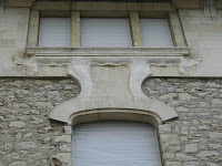 Néanmoins, les détails sont intéressants. Non pas les ferronneries, d’un agréable modèle industriel, mais les éléments sculptés, autour des fenêtres et surtout sur la base de toutes les parties en encorbellement, entre les 1er et 2e étages. Cette sculpture ornementale relève de la “nouille” la plus divertissante, compliquée et joliment désordonnée. Si l’immeuble était un peu plus propre, ce serait un vrai régal pour les yeux !