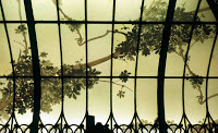 Le vitrage du comble est composé de feuilles de verre double courbé à la demandé et décoré, par peinture sur verre, de branchages et rameaux dans le goût un peu japonais, aujourd’hui en faveur.