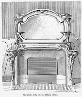 L’intérieur de la demeure, avec son magnifique escalier central, caractérisé par des ouvertures circulaires à chaque étage, entourées de balustrades, et un grand vitrail sommital, affichait déjà une modernité beaucoup plus franche. Le grand salon, pour sa part, n’était qu’un jeu de boiseries et de glaces, autour d’une extraordinaire et très originale cheminée en grès. Les retombées d’arcs, à décor d’animaux, signalaient certainement un goût passionné du propriétaire pour la chasse. Si nous ne savons pas grand chose de l’allure des autres pièces, les quelques cheminées reproduites dans la presse suffisent à y supposer, au moins, une égale invention à tous les niveaux, avec un grand souci de qualité technique.