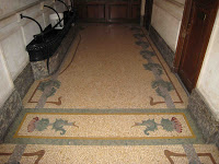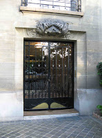 (2) Le dallage de ce porche m’a infiniment surpris, puisque j’y ai reconnu les mêmes carreaux utilisés par Hector Guimard pour les pièces de service de l’hôtel Mezzara. Cette découverte permet donc, sans doute, de penser que Guimard n’est pas l’auteur des motifs, pourtant d’un Art Nouveau à la fois simple et original.