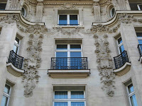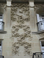 Ces motifs, à vrai dire assez communs dans le paysage parisien, sont traités avec une monumentalité qui les rend très impressionnants. Ainsi le regard est-il particulièrement attiré par l’ornementation des soubassements de balcons, constitués de frises compactes de grands tournesols, alignés avec une régularité qui leur donne un curieux aspect de dentelle. Sous le dernier balcon, ces frises sont interrompues par des fleurs encore plus gigantesques, enserrées dans une ravissante résille aux sinuosités compliquées, parfaitement représentative de l’esthétique “nouille” de l’Art Nouveau.