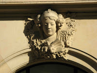 Heureusement, quelques délicieuses grisettes (et une petite fille) invitent à lever les yeux vers les fenêtres des étages supérieurs, où - “en cheveux” ou chapeautées de façon très pittoresque - elles paraissent très indifférentes au bruit d’une rue où la circulation est aujourd’hui très dense. Leurs visages se répètent d’un immeuble à l’autre, signe que cette sculpture ornementale fut pratiquement réalisée en série. Les visages sont très caractérisés ; il pourrait donc s’agir de véritables portraits. Les immeubles ayant une origine commune dans le cercle étroit de la famille de l’architecte, il se pourrait que ces femmes et cette fillette soient la représentation de membres de la famille Obrecht.