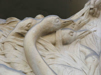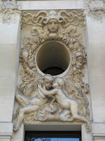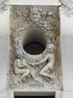 Au travers de la porte d'entrée, on peut apercevoir d’autres enfants nus, sur de grands panneaux de céramique brune, qui n’ont que l’inconvénient apparent d’être tous identiques. N’ayant pas pu les approcher, je ne peux qu’avancer le nom de Cordonnier comme probable auteur.