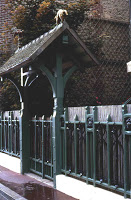 (1) Elle n’est pas sans liens stylistiques avec “La Casamaures”, une villa de Grenoble bâtie entre 1855 et 1878 par Joseph Jullien, dit Cochard. Elle aussi en ciment moulé, mais en totalité, elle est située dans un grand jardin et s’orne de beaux vitraux. On lui préfèrera tout de même ici la maison de Valence, d’une plus distrayante - mais très apparente - désorganisation décorative.
