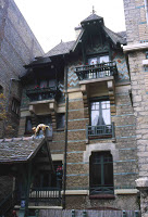 La maison n’est pas signée, mais il m’a été possible d’apprendre - grâce à un autre blog ! - qu’elle fut construite en 1901 par Ephraïm Pinêtre (1). Qui était cet architecte ? Si on regarde l’immeuble en briques et pierre qu’il construisit au n°32 du même boulevard, en 1902, il ne se présente guère comme un adepte forcené de l’Art Nouveau, qui n’a sans doute été pour lui qu’un exercice de style, exécuté à la demande d’un commanditaire particulièrement audacieux.