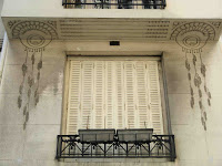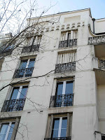 Parmi les autres détails intéressants que l’élévation dessinée laissait entrevoir, on remarque des arcatures décoratives, assez proches de celles employées par Lavirotte dans ses beaux immeubles du début des années 1900, ainsi qu’un animal sculpté - chat ou hibou - entre les deux bow-windows jumeaux qui ornent le centre d’une composition très symétrique, seulement rompue par la présence d’un jolie devanture de boutique.