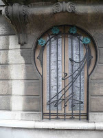 Le dessin de la porte d’entrée pourrait être à la fois belge et nancéien, grâce à son élégant compartimentage en bois. Mais on s’attachera surtout à l’étonnante composition des deux petites fenêtres du rez-de-chaussée, dont les ferronneries proposent un dessin vraiment original, d’un graphisme remarquablement nerveux. Les rehauts de couleur, formant des roses bleues d’un bien charmant effet, contribuent à attirer l’œil sur ces éléments d’une belle invention. L’architecte semble avoir été moins heureux pour la porte d’entrée, où la nécessité d’un motif couvrant le prive d’une certaine aération. Hélas, les garde-corps des autres fenêtres sont un joli modèle, mais purement industriel.