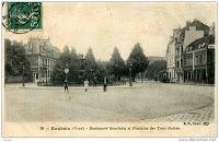 P. S. : En faisant une petite recherche sur un site de vente de cartes postales, j'ai retrouvé notre charmante maison, dont l'adresse était alors "boulevard Gambetta". Le bow window avait une petite toiture indépendante et pointue, dans laquelle apparaissait une fenêtre assez simple. Pour banal qu'il était, ce couronnement donnait tout de même une silhouette un peu plus élégante à l'édifice que celle qu'on lui connaît aujourd'hui. Devant la maison, une jolie place avec une fontaine est devenue un boulevard où passe un de ces nouveaux tramways qui fleurissent un peu partout en France. Ce n'est plus le même charme.