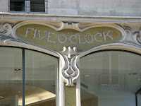 Entre 1899 et 1910, son immeuble de la rue de Rennes fait donc figure d’exception magnifique dans l’œuvre de Auscher, qui y a sacrifié très ouvertement au style “nouille”, celui qui nous amuse tant chez Wagon ou chez Raquin. Ceci nous vaut d’assez fascinants balcons en “guimauve”, dont le caractère végétal est rendu avec une stylisation extrême qui confine parfois à la pure abstraction, et surtout une tour d’angle, évidemment conçue comme une sorte de fanal publicitaire. Depuis 1904, les mots “Félix Potin” en ornent toujours les frontons, et on se félicitera qu’aucun des propriétaires postérieurs n’ait eu l’idée - coûteuse et peu utile - de substituer son nom à celui du commanditaire, ni même d’effacer la totalité du décor des beaux écussons en mosaïque dorée, faisant l’annonce des produits du “five o’clock” au premier étage, ou du rayon de la poissonnerie, sur le rez-de-chaussée de la rue Blaise-Desgoffe. N’est-il pas amusant de voir des vêtements se vendre dans un édifice continuant à faire de la réclame pour des biscuits ou du chocolat !