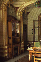 La belle manière de l’architecte se retrouve pleinement, et avec bonheur, dans les détails des vitraux, le dessin des ferronneries, le dessin toujours magnifique des entourages de porte, et les mille et un petits détails de boiseries. La juxtaposition de deux styles indique certainement ici, sinon une période de doute dans son esprit, du moins une probable rechercher de renouvellement.