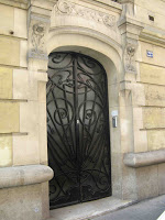 L’immeuble est très sobre, et ses ferronneries sont d’origine industrielle. Mais une création spécifique a néanmoins été réalisée pour la porte d’entrée, aux circonvolutions compliquées à souhait.