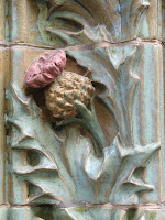 Ainsi, les angles, les arêtes, les linteaux, les soubassements, en somme tout ce qui appartient aux lignes de construction de l’édifice, sont recouverts de buissons de chardons, faussement menaçants, aux formes compliquées magnifiquement exploitées.