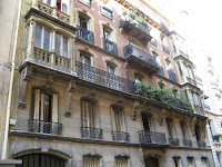 Nous retrouvons, en façade, une des travées saillantes qu’il affectionnait tant, couronnée par un grand balcon couvert, sauf qu’elle est complètement déportée sur la gauche, créant une franche dissymétrie, bien nouvelle dans l’œuvre de Plumet. Pour la première fois s’affirme la loggia ouverte, à belles arcatures, qui restera longtemps un trait de style caractéristique. Elle est soutenue par ces départs d’arcs déjà rencontrés rue Truffaut, et concentre le peu de couleur - plutôt ocre - qui anime la blancheur de la pierre de taille. La porte d’entrée reste comparable à celles des années 1891-1894, fort simple et discrète, agrémentée de petits vitraux de couleurs, mais sa poignée est une créateur formidablement réussie. Toutes les ferronneries, sans être très compliquées, adoptent désormais un dessin indiscutablement Art Nouveau, comme les vitraux décorant partiellement les grandes baies du bow-window latéral.