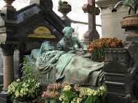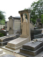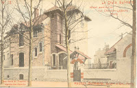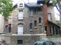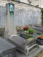 Puisque nous sommes dans le domaine funéraire, et que nous parlons de céramistes, je ne saurais trop recommander d'aller voir, au cimetière du Père-Lachaise à Paris, la très curieuse tombe que l'architecte Georges Guët (1866-1936) construisit pour sa famille, très certainement à l'occasion de la disparition de son père, survenue en 1903. L'édifice, complètement ajouré, paraît malheureusement un peu rachitique, à l'image de ses très effrayants gardiens, et certains de ses détails, en particulier son couronnement et sa jolie croix, auraient pu laisser espérer un peu plus d'excentricité. Mais il faut dire que le monument a été construit dans un espace très étroit, et une végétation envahissante empêche de l'admirer dans les meilleures conditions. Néanmoins, avec l'aide des sculpteurs M. Braemer et T. Prudhomme - celui-ci ayant signé le buste de femme figurant au fond du monument, daté de 1904 -, Guët a réalisé une composition étrange, variée et colorée. Mais l'équipe fut grandement aidée par les céramistes Gentil et Bourdet, qui commençaient alors une carrière qui allait devenir particulièrement brillante. Pour la tombe Guët, ils réalisèrent des éléments en grès à la façon d'Alexandre Bigot, mais en commençant déjà à s'adonner, timidement, à ce qui allait rapidement assurer leur succès : la mosaïque de grès.