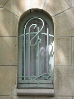 Le cimetière Montparnasse conserve un des rares monuments réalisés par Guimard au cours de sa dernière période créatrice : la tombe d’Albert Adès (1893-1921), de 1922. Ce jeune écrivain plein de talent, auteur de “Goha le Simple”, un bien joli roman orientaliste qui lui assura un joli succès de librairie - et dont je recommande vivement la lecture à ceux qui pourraient en trouver un exemplaire -, a été représenté en buste par le sculpteur polonais Georges Clement de Swiecinski, dont une grande partie de l’œuvre se trouve aujourd’hui conservée au musée de Guéthary, petite ville de la côte basque où il passa une grande partie de sa carrière. Guimard l’avait peut-être rencontré pendant la Grande Guerre, alors qu’il s’était réfugié à Pau. La stèle du monument se termine en portique, dont les fines colonnettes ouvragées ont malheureusement été peu à peu rongées par la pollution et les intempéries. Néanmoins, on y devine encore quelques-unes des dernières sinuosités vaguement végétales de Guimard, toujours d’inspiration Art Nouveau malgré la date tardive du monument. La nette influence néo-classique qu’on y remarque est loin d’être inintéressante et montre comment, dans un exercice de style aussi conventionnel, l’architecte sut rester personnel et fidèle à ses idées, tout en adaptant son art à une époque plus économe, plus rectiligne et plus austère.