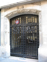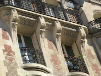 Henri Senet, architecte assez prolifique et très présent à Paris - mais sur lequel on ignore pratiquement tout -, ne s’embarrassait guère de logique historique. Rue Legendre, il fit feu de tout bois, et l’Art Nouveau trouva même dans son travail une place non négligeable pour mieux parfaire son délicieux bric-à-brac, en particulier dans toutes les parties sculptées, où tout un ensemble de feuilles diverses apparaît finement ciselé sur tous les endroits où leur place était prédestinée : encadrement d’ouvertures, consoles, soubassements de balcons. Mais c’est évidemment autour de la porte d’entrée qu’il apparaît le plus ouvertement, sous la forme d’une belle rangée d’arums gracieusement détaillée.