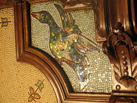 Les mosaïques se font immédiatement remarquer : elles couvre le sol, les murs et surtout les plafonds. Bichi les a couvertes de centaines de motifs, d’un dessin souvent naïf, mais d’une grande gaieté dans les coloris : fleurettes au sol, motifs plus géométriques sur les murs, insectes, papillons, fleurs et fruits sur les plafonds. L’artiste a parfois utilisé des tesselles dorées pour mieux faire briller ses dessins, et intégré de grosses perles de verre pour créer, par endroits, un léger relief.