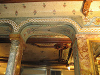 Le décor est constitué de deux éléments principaux, différents, mais très complémentaires : de grands panneaux de faïence, intégrés dans un habillage de mosaïques. Le reste du restaurant, en marbres de couleur, bois de teck et bronze, apparaît plus conventionnel, même si la verrière centrale revêt quelques grâces orientalisantes. De ses verres peints et partiellement dorés d'origine, il ne reste que quelques fragments : détruite pendant l'une des deux Guerres mondiales, elle ne fut malheureusement jamais reconstituée (1).