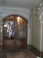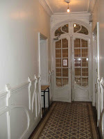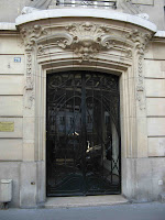 Mais le vestibule, encore une fois, lui permet de montrer toute l’étendue de sa fantaisie, dans son style parfaitement reconnaissable. Les mosaïques de sol et les boiseries de la porte intérieure contribuent à faire de cet espace une ravissante création, voulue pour le seul plaisir des occupants de l’immeuble... et de leurs visiteurs.